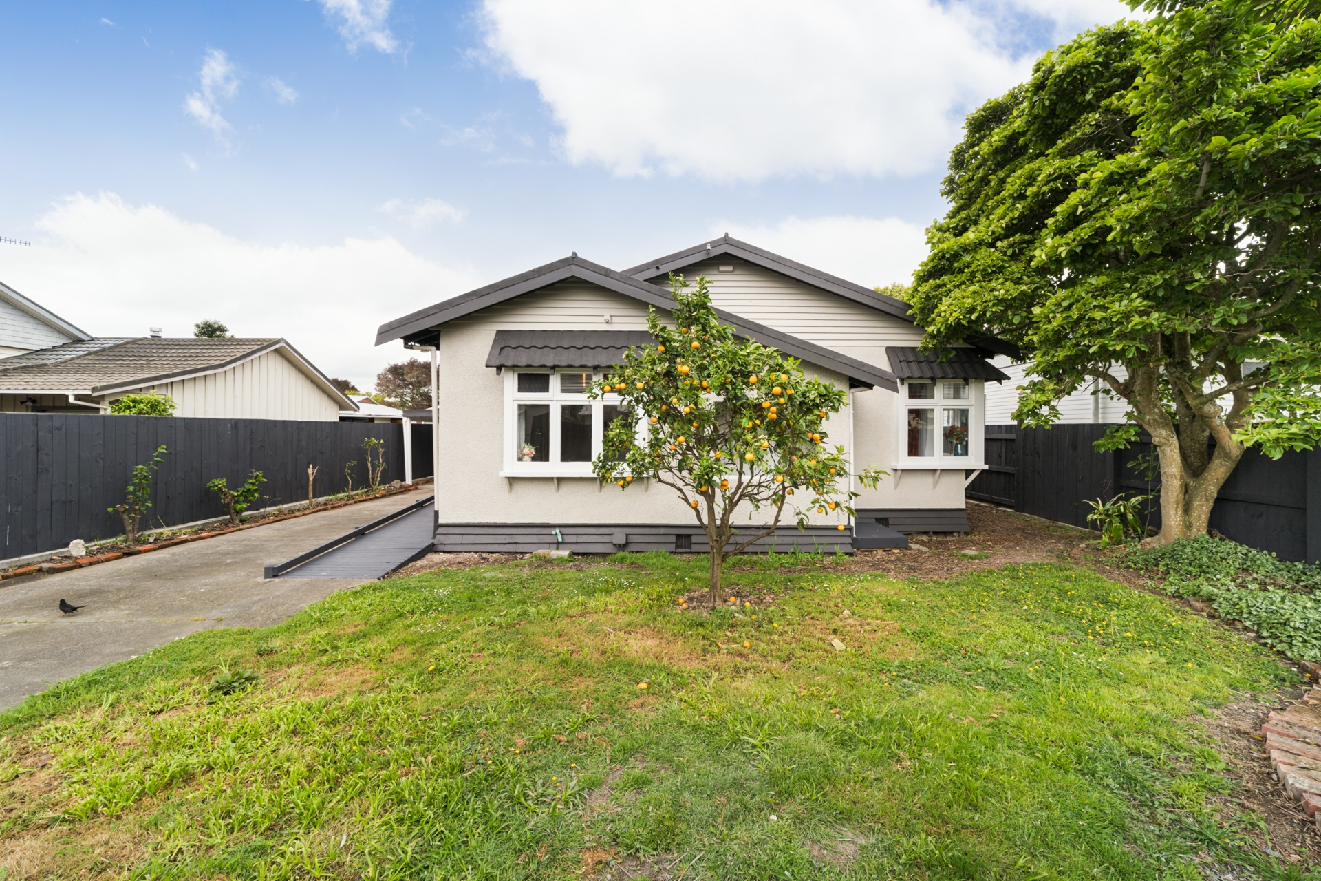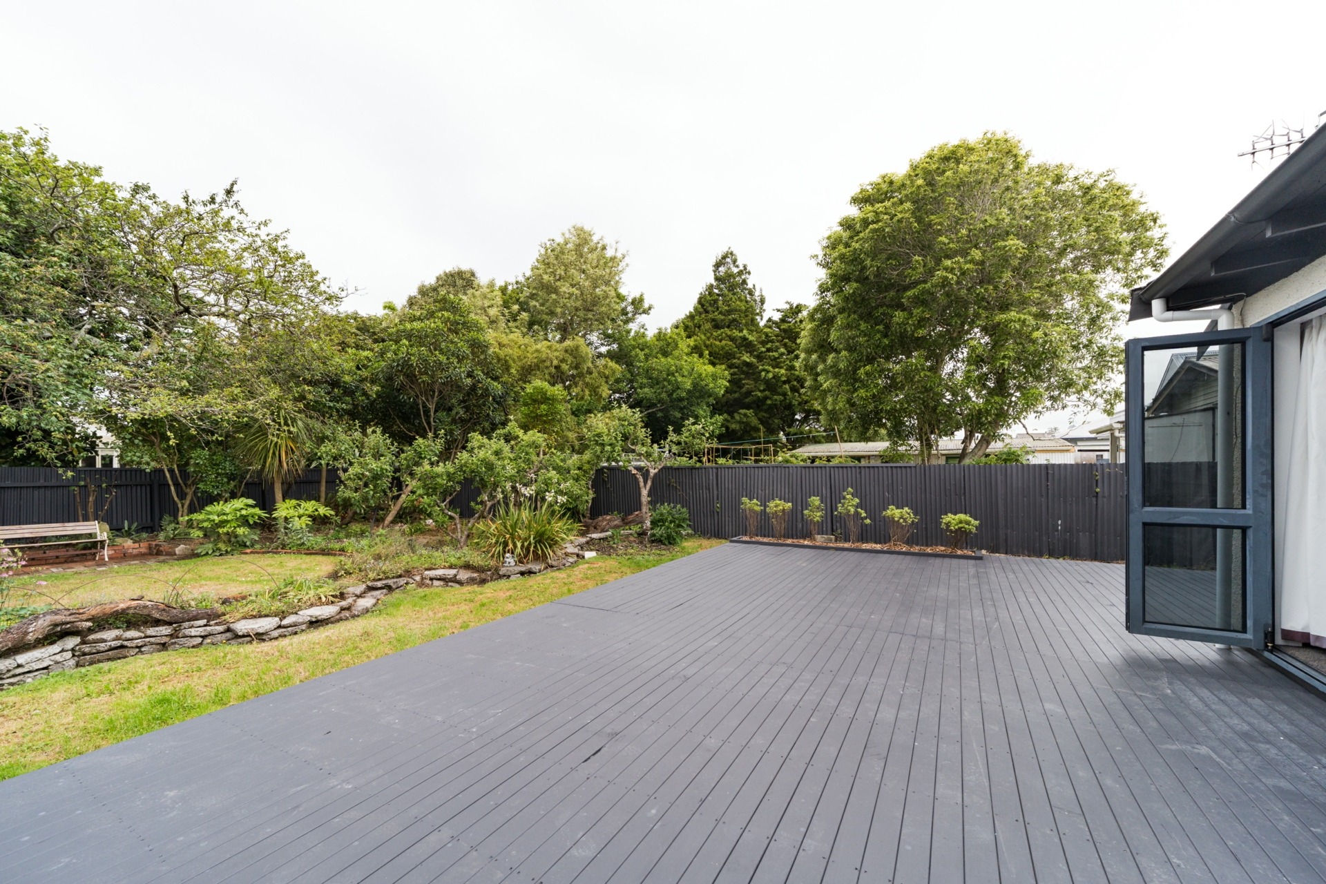 Outdoor space is a standout, , featuring a generous sun-soaked deck and an established gardens complete with fruit trees, an inviting, private setting for entertaining, relaxing, and offering a secure area for children and pets.