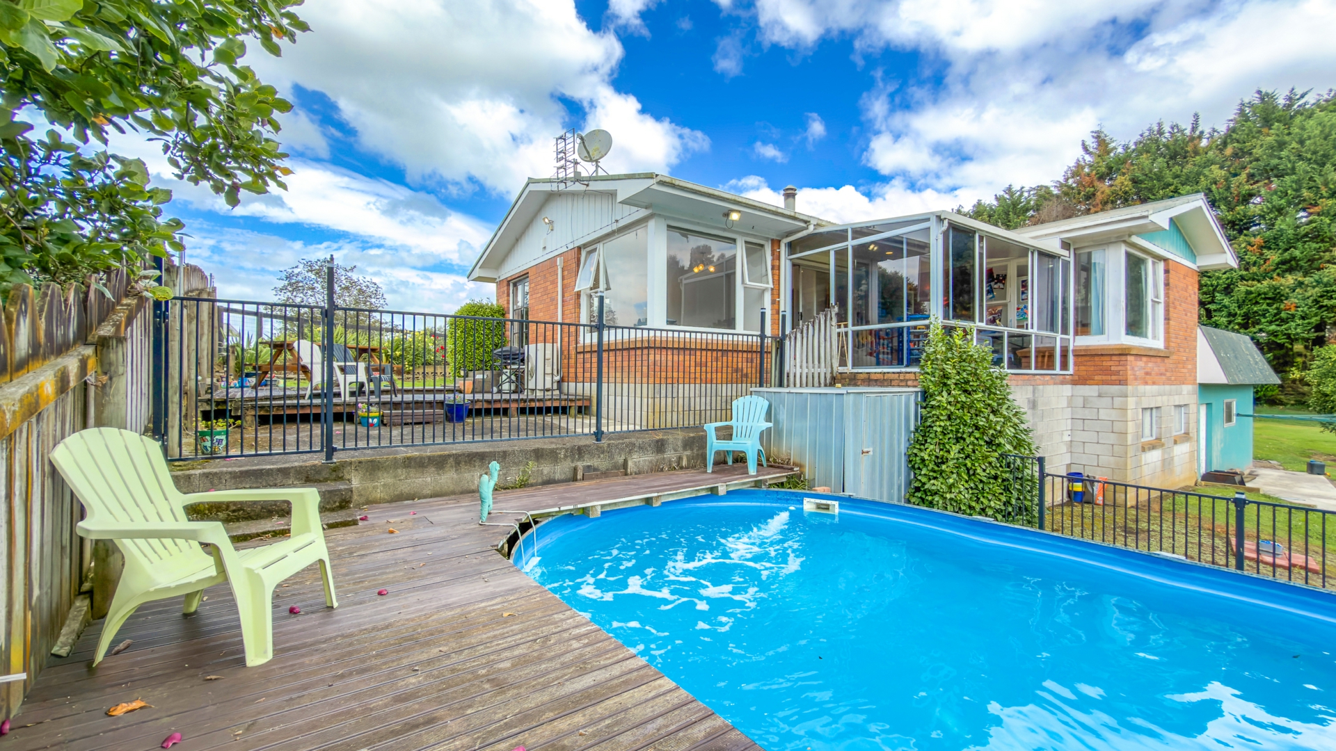 Outdoor living is well catered for with a decking area and pool, perfect for summer entertaining or relaxing while enjoying the peaceful surroundings. Adding to the appeal are golf course views, creating a sense of space and outlook rarely found this close to town.