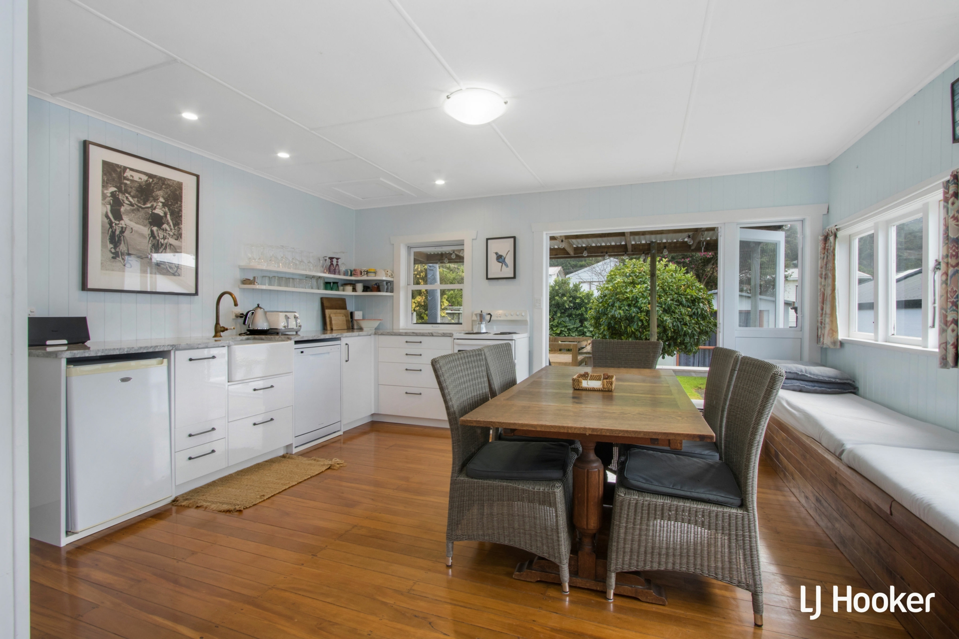 If you have always wanted that original style beach house that is comfortable with peaks of the ocean from your front room and still has grass to walk on, then this one's for you. So many options here. There is even a sleepout for the overflow. Walk in and you feel the vibe straight away. Indoor/outdoor living is another bonus.