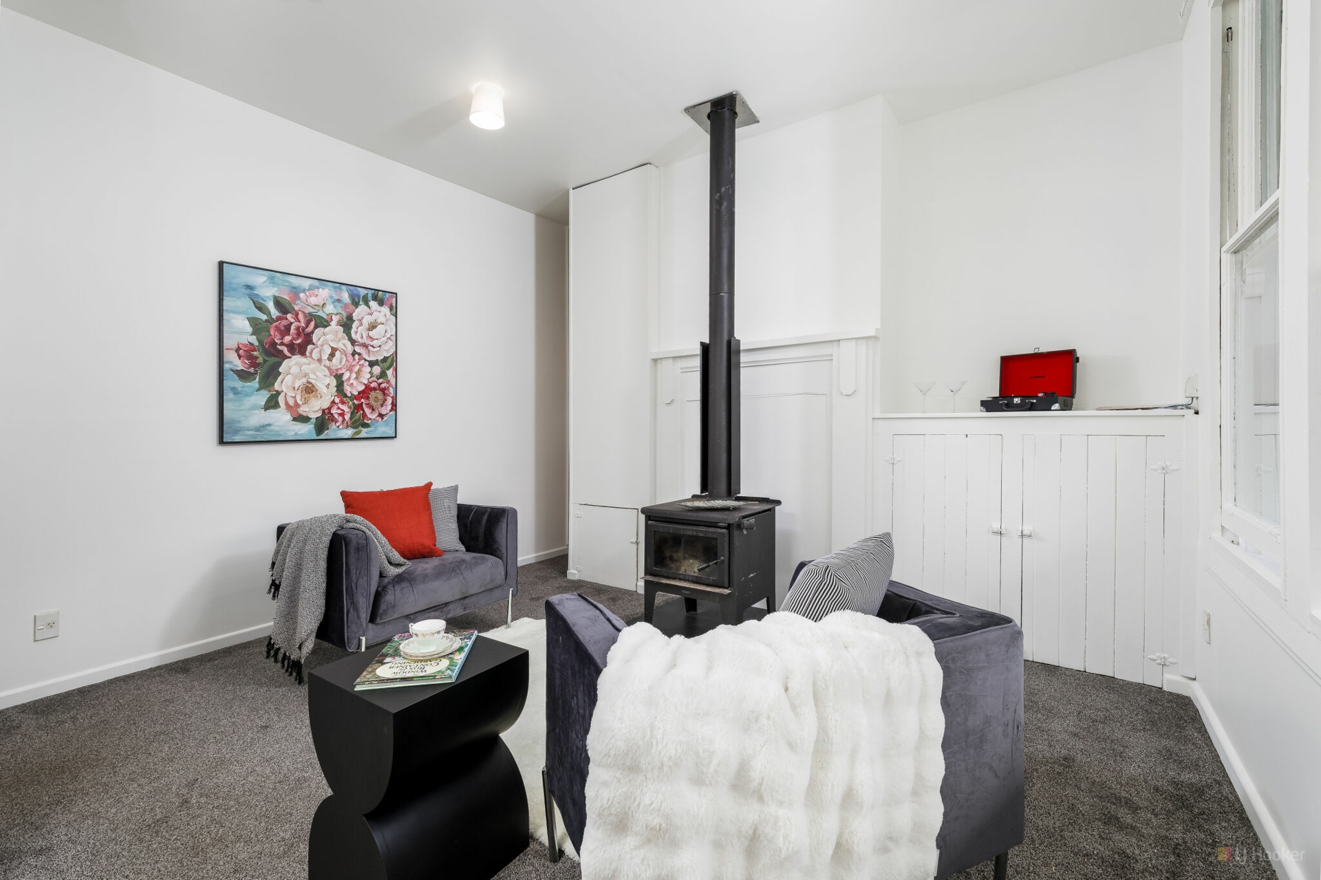 Discover your perfect home in this charming end-unit! Featuring three spacious bedrooms, a comfortable shower over the bath, and a separate toilet and laundry for convenience. Enjoy relaxing outdoors on the front and rear terraces, all on a fenced front section for privacy and security. Open-plan living creates a warm and inviting atmosphere, heated by a cozy log burner. Off-street parking and an easy walk to town and cafes make this property ideal for modern living. Recently repainted both inside and out, ready for you to move in. Subject to new title issue.