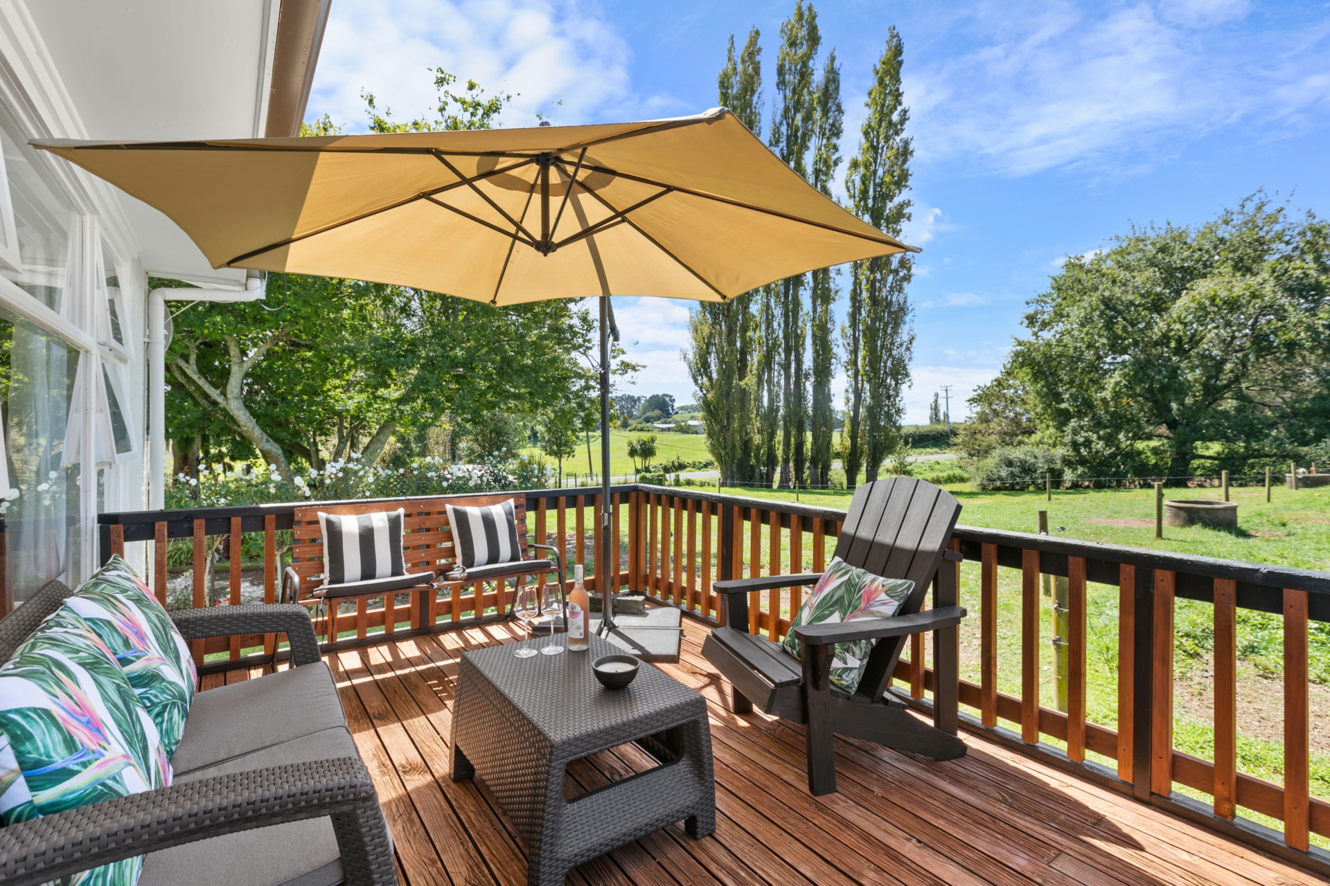 An Outdoor deck overlooking the small grazing paddocks allows for that 'me time' with a nice drink after work.