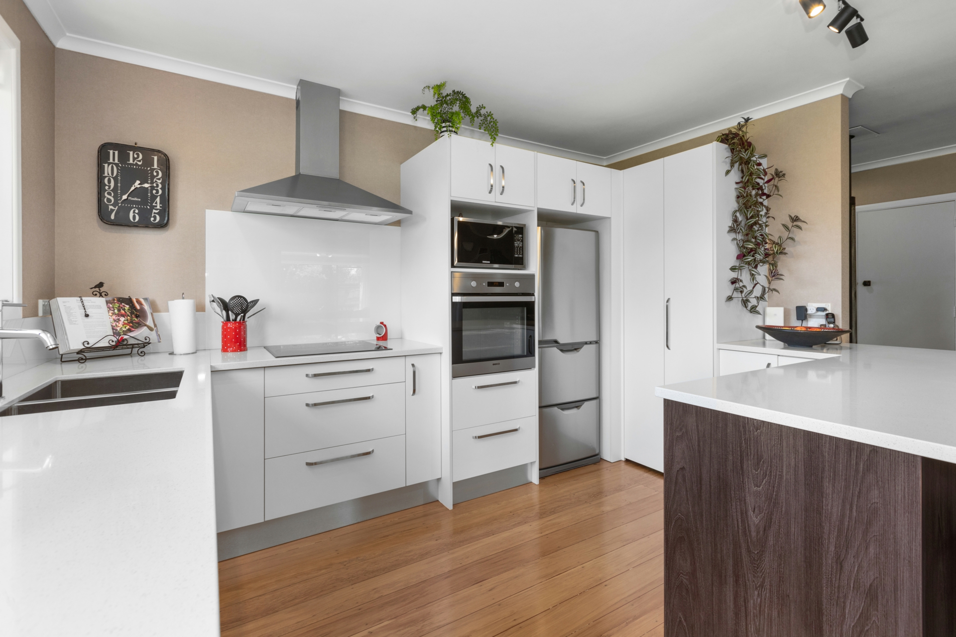 The easy care gardens in this tranquil spot have some beautiful Kauri, Redwood, Maple and flowering cherry trees to name a few.